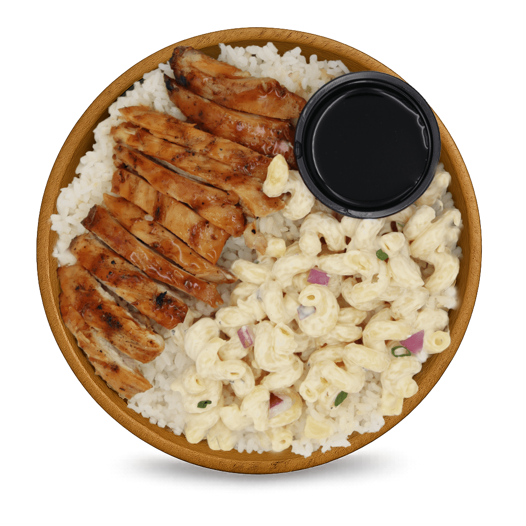 Tender marinated grilled chicken, creamy island macaroni and our signature Hawaiian Teriyaki glaze over fluffy white rice. Your escape to flavor awaits!Dine With Us!